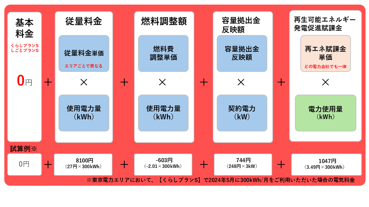 「くらしプラン」「しごとプラン」はいずれも基本料金を0円としており、電力量料金のみが設定されています。