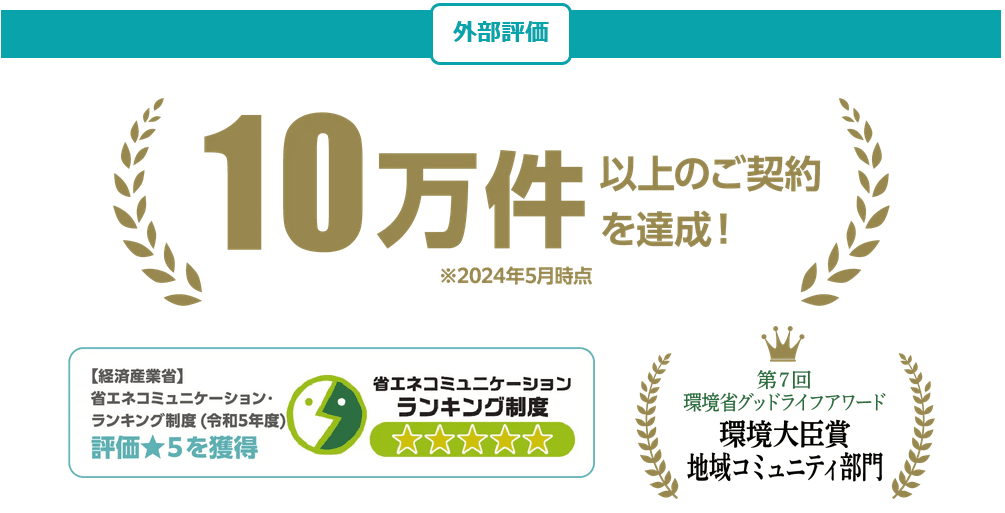 また、全国で新電力事業や再生可能エネルギーの開発を行い高い評価を得ているだけでなく、10万件以上の契約があり、外部からの評価もされています。