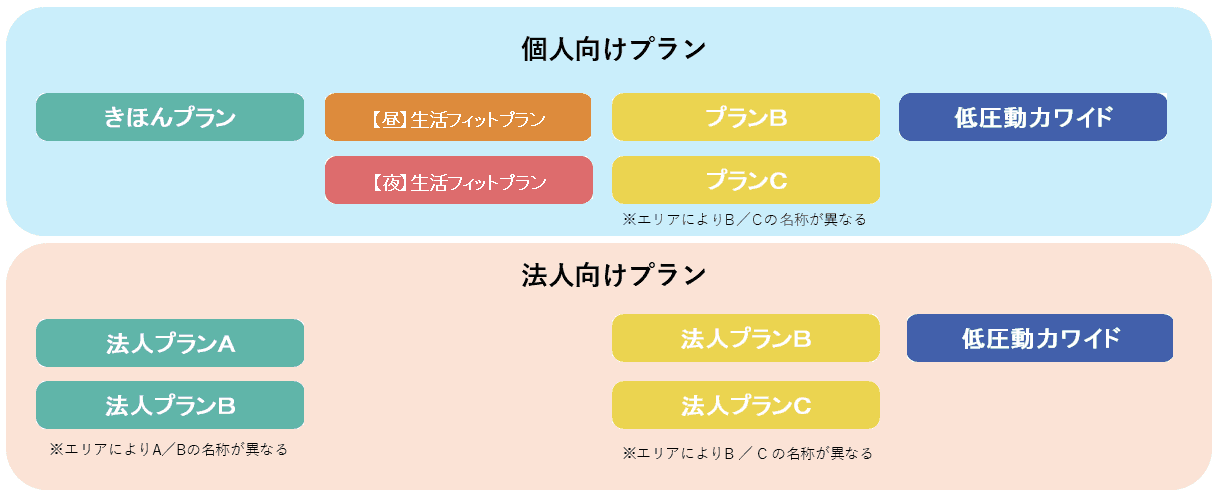 - ライフスタイルに合わせたプラン選択が可能 一人暮らしや電気をあまり使わない方向けの「きほんプラン」や【昼】・【夜】生活フィットプランなど、各家庭の生活リズムや電力使用時間に応じたプランが用意されており、最適な選択ができる。