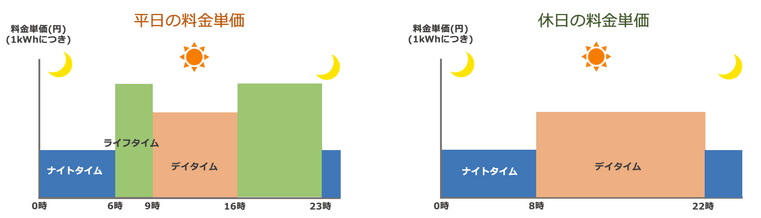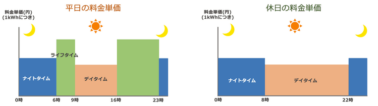 - 在宅勤務や子育て世帯に向けたプラン有 平日昼間の利用が多い方や、在宅勤務・子育て世帯の方に向けたプラン設定により、日中の電気料金が安くなる仕組みがメリット。